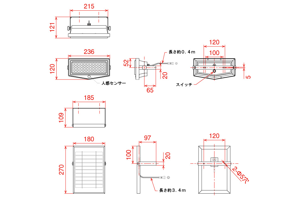 電線長(m) | 本体/0.4、パネル/3.4 |