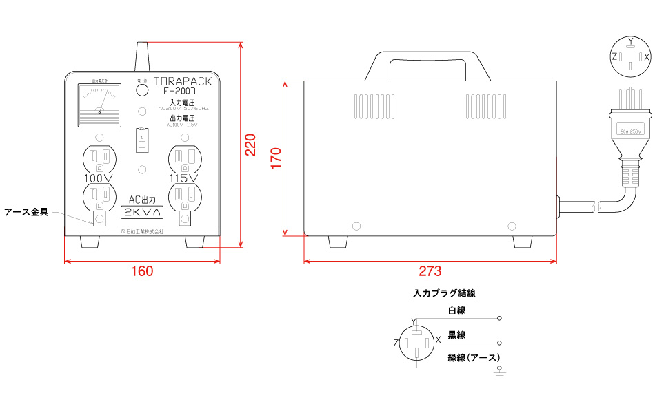 降圧専用トランス トラパック 200V→100・115V 2KVA