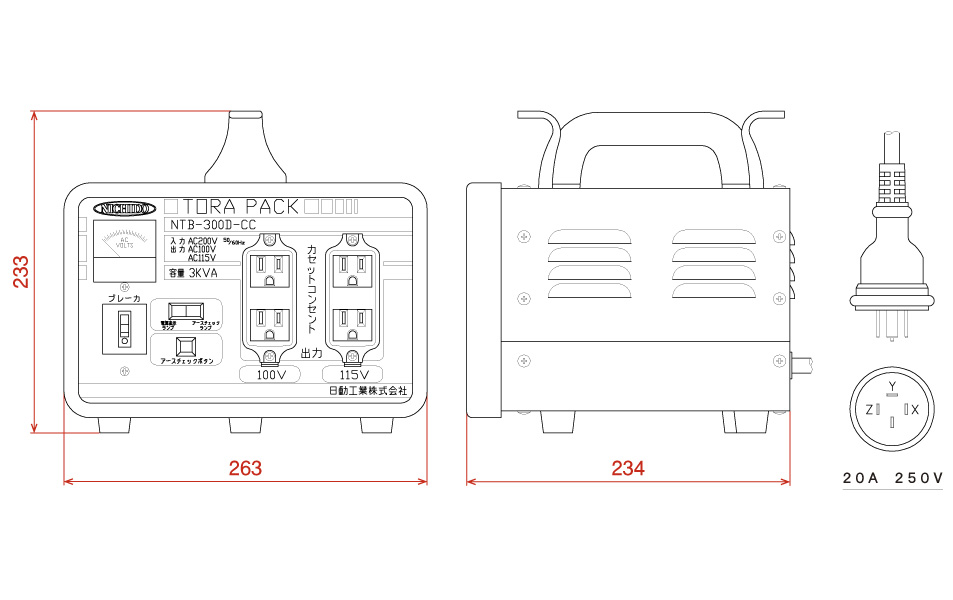 電圧降下が少なく、200V電源から安定した100Vを供給できます。