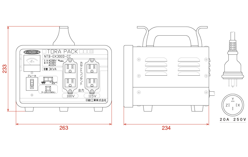 電圧降下が少なく、200V電源から安定した100Vを供給できます。