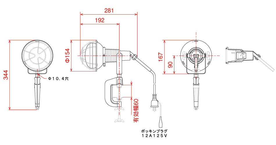 屋内・屋外兼用、AC100V専用、作業用白熱球投光器です。