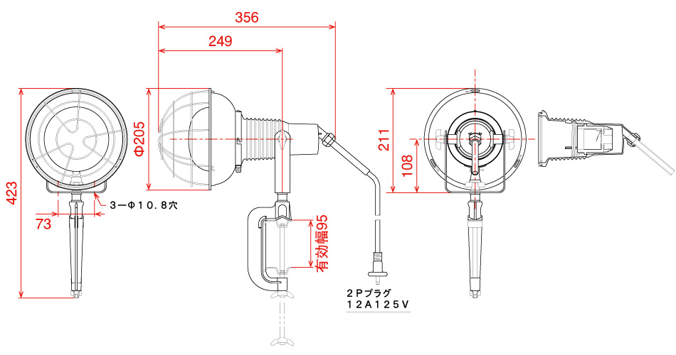 屋内・屋外兼用、AC100V専用、作業用白熱球投光器です。