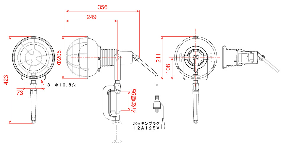 屋内・屋外兼用、AC100V専用、作業用白熱球投光器です。
