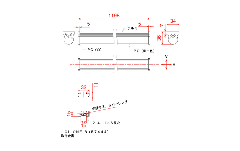 | 付属品 | 取付金具(LCL-ONE-B)✕2 取付金具固定ビス✕2(3✕20㎜皿タッピングビス) |