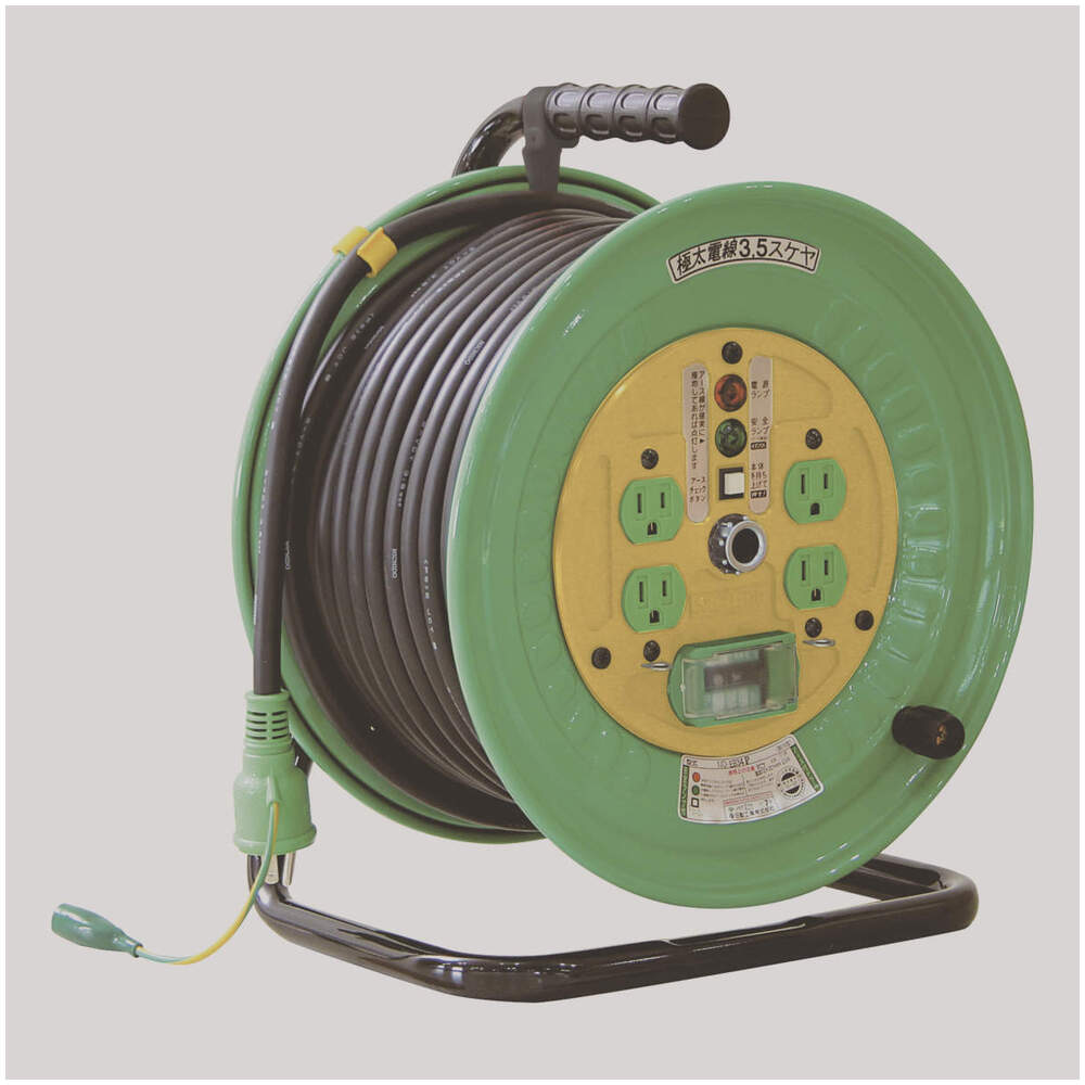 コードリール 100V 屋内用 漏電保護専用ブレーカー付 極太3.5mm2電線 30m