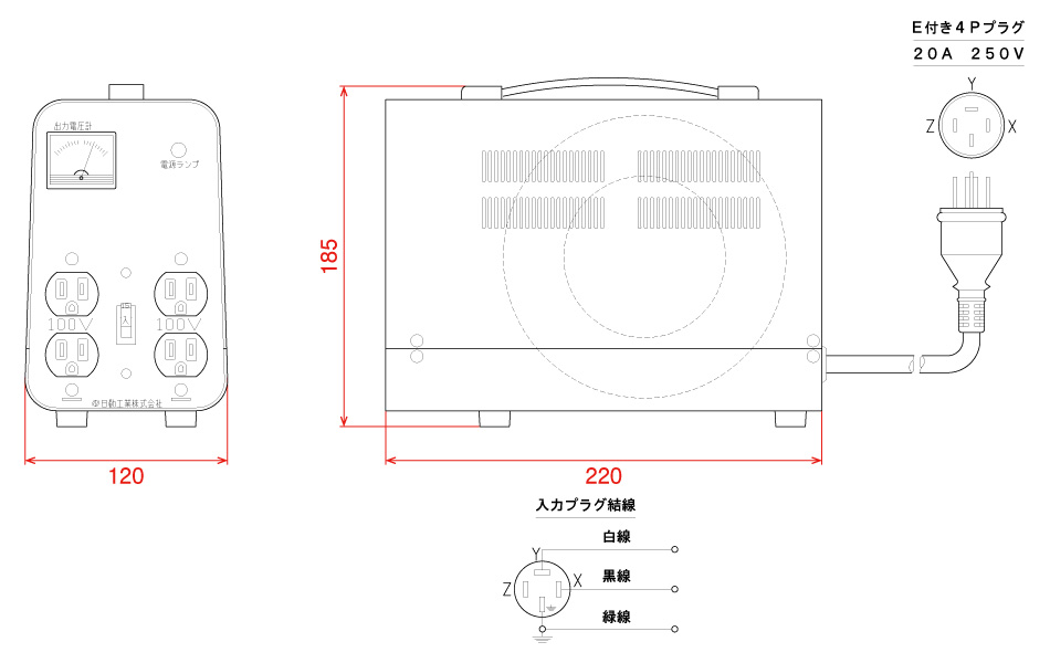 電圧降下が少なく、200V電源から安定した100Vを供給できます。