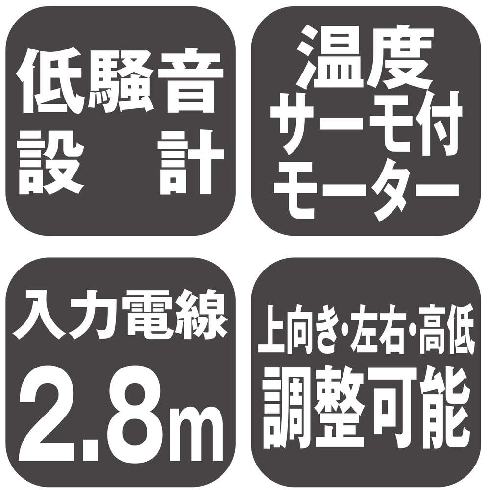 | 風量 | 50Hz:弱180/中260/強390m³/min 60Hz:弱290/中380/強500m³/min |