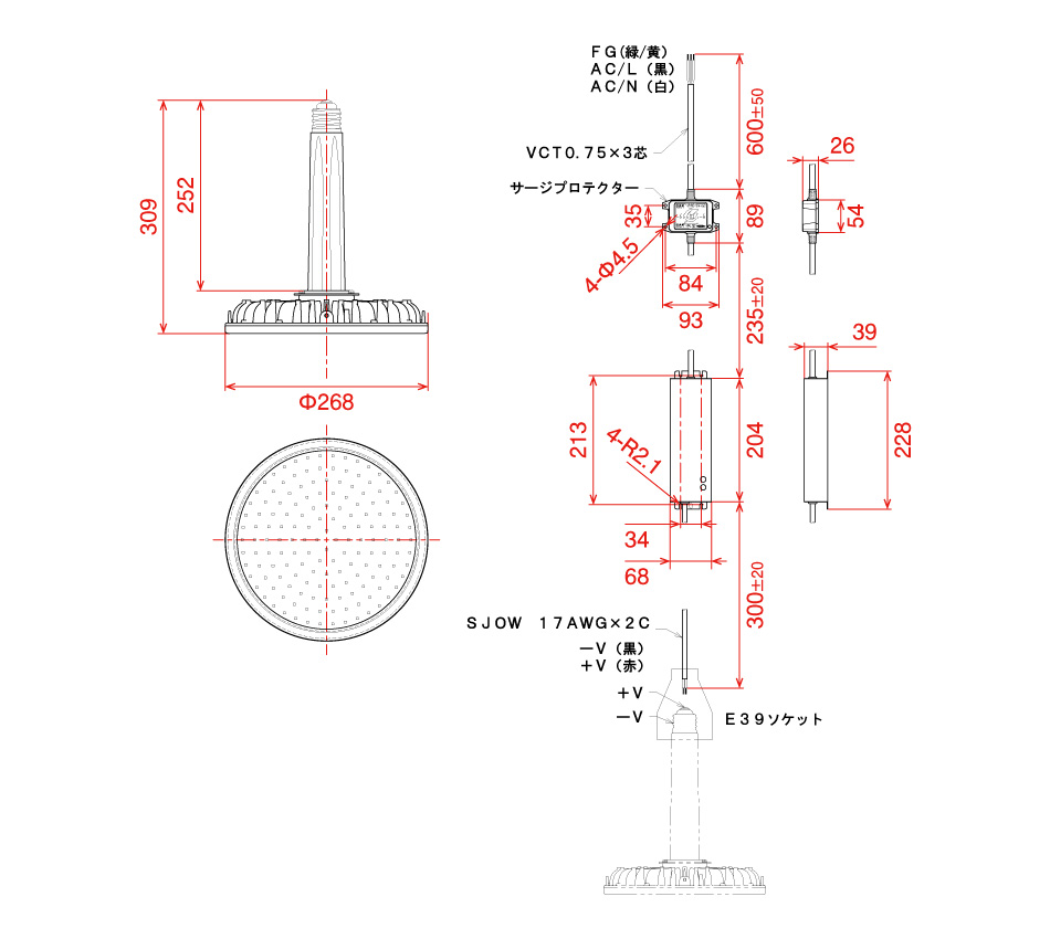 電線種 | 電源装置 1次側/VCT 0.75mm²✕3心 2次側/17AWG✕2心 |