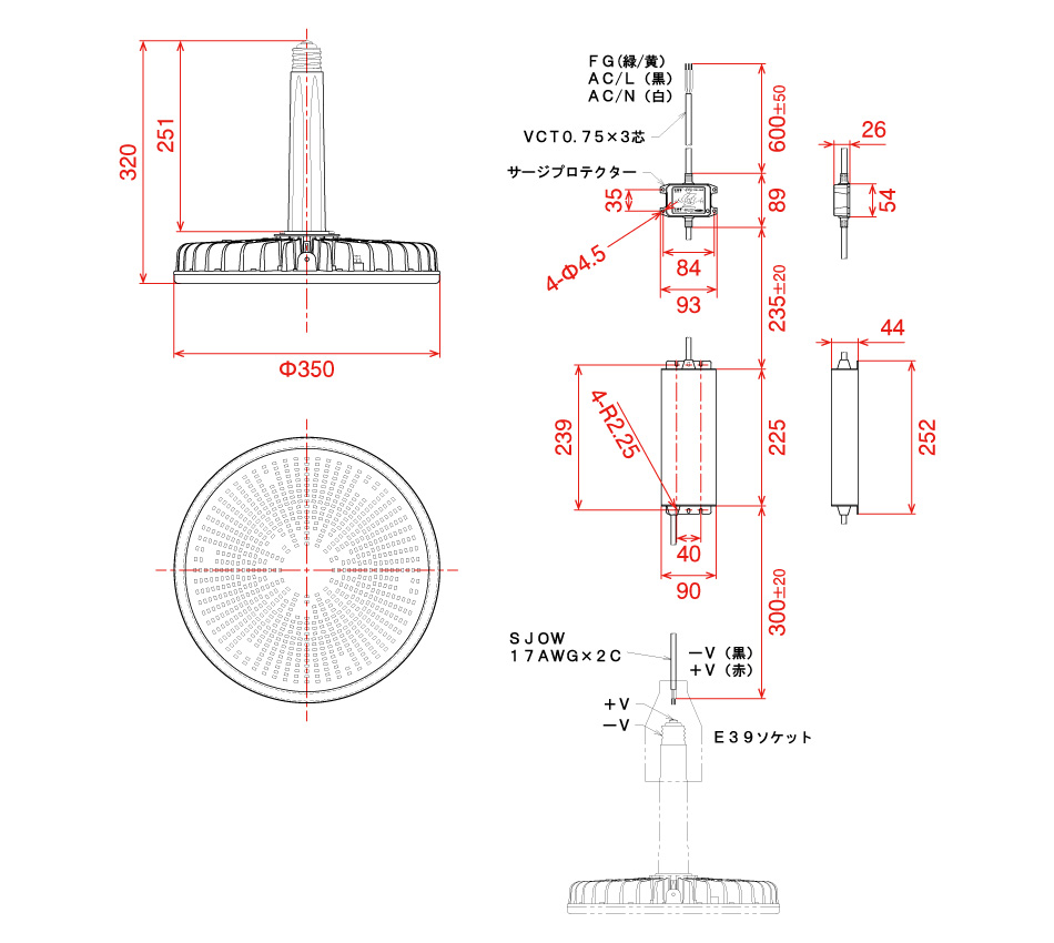 電線種 | 電源装置 1次側/VCT 0.75mm²✕3心 2次側/17AWG✕2心 |
